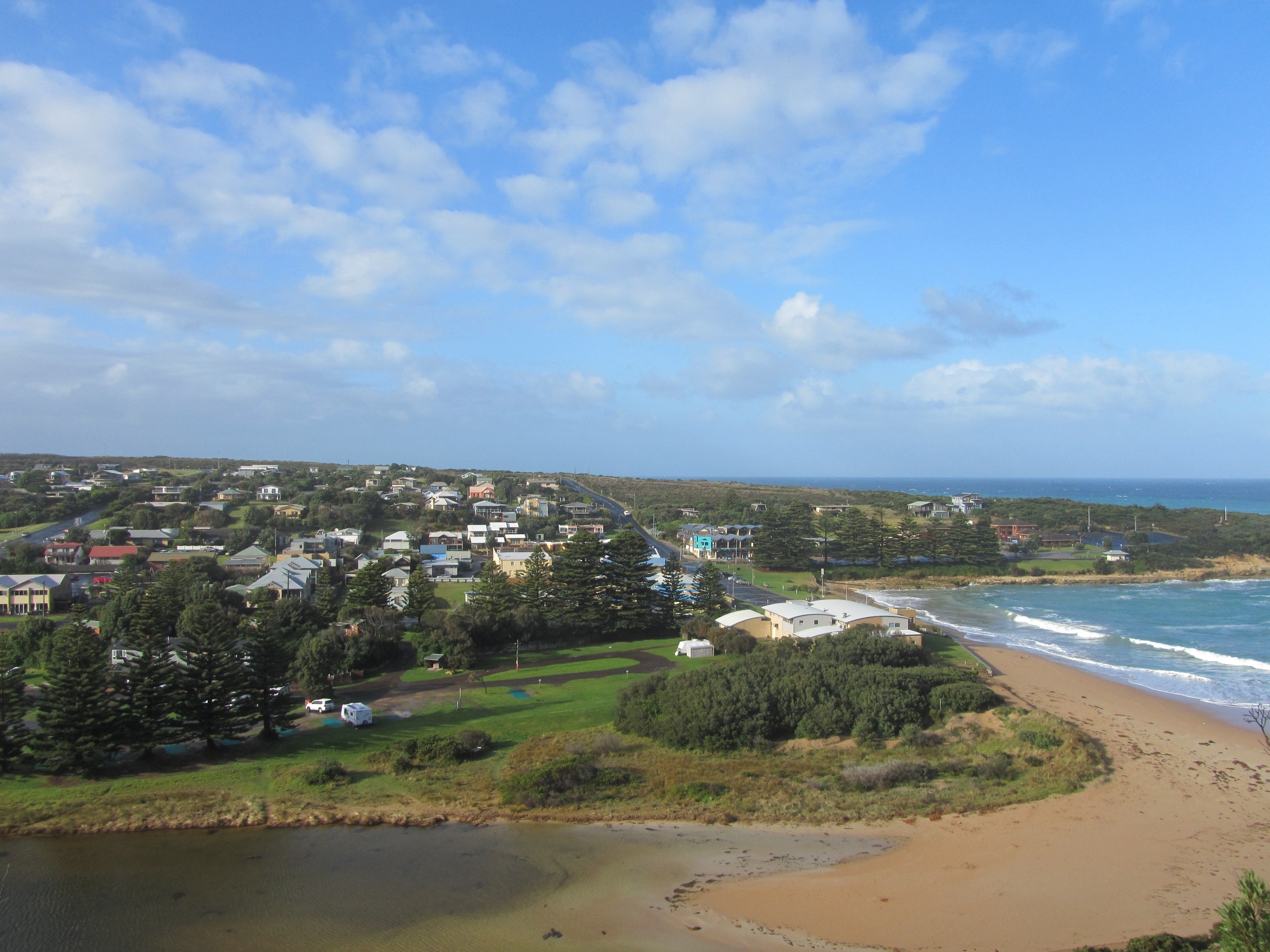 We made it to Lorne. One of the highly recommended towns to spend some time in. We didn’t see much of it, but we did explore just enough to find much needed food and coffee. The Bottle of Milk looked inviting and served up just what we needed – I had a breakfast burger with everything but the kitchen sink on it (avocado and a hashbrown and… ) and Jon had scrambled eggs with pickles, yes pickles. Strange, but it all worked.