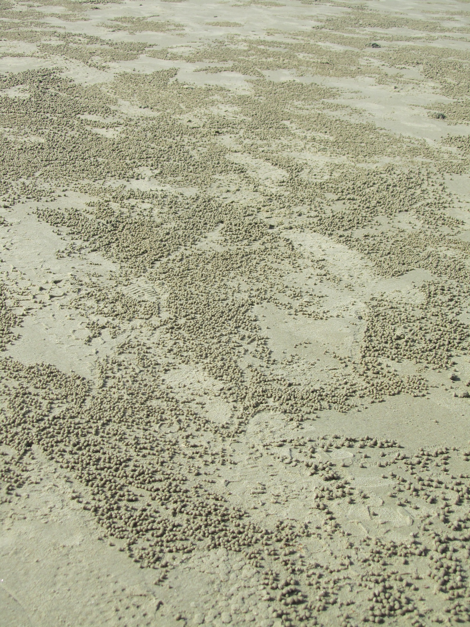 We learned that the beach is home to the Sand Bubbler Crab, they seem to have the terrible job of hiding in the sand until the tide goes down and then harvesting the sand for any food in it and discarding the sand in little balls near their hole. I found them fascinating, they made the beach look like art.