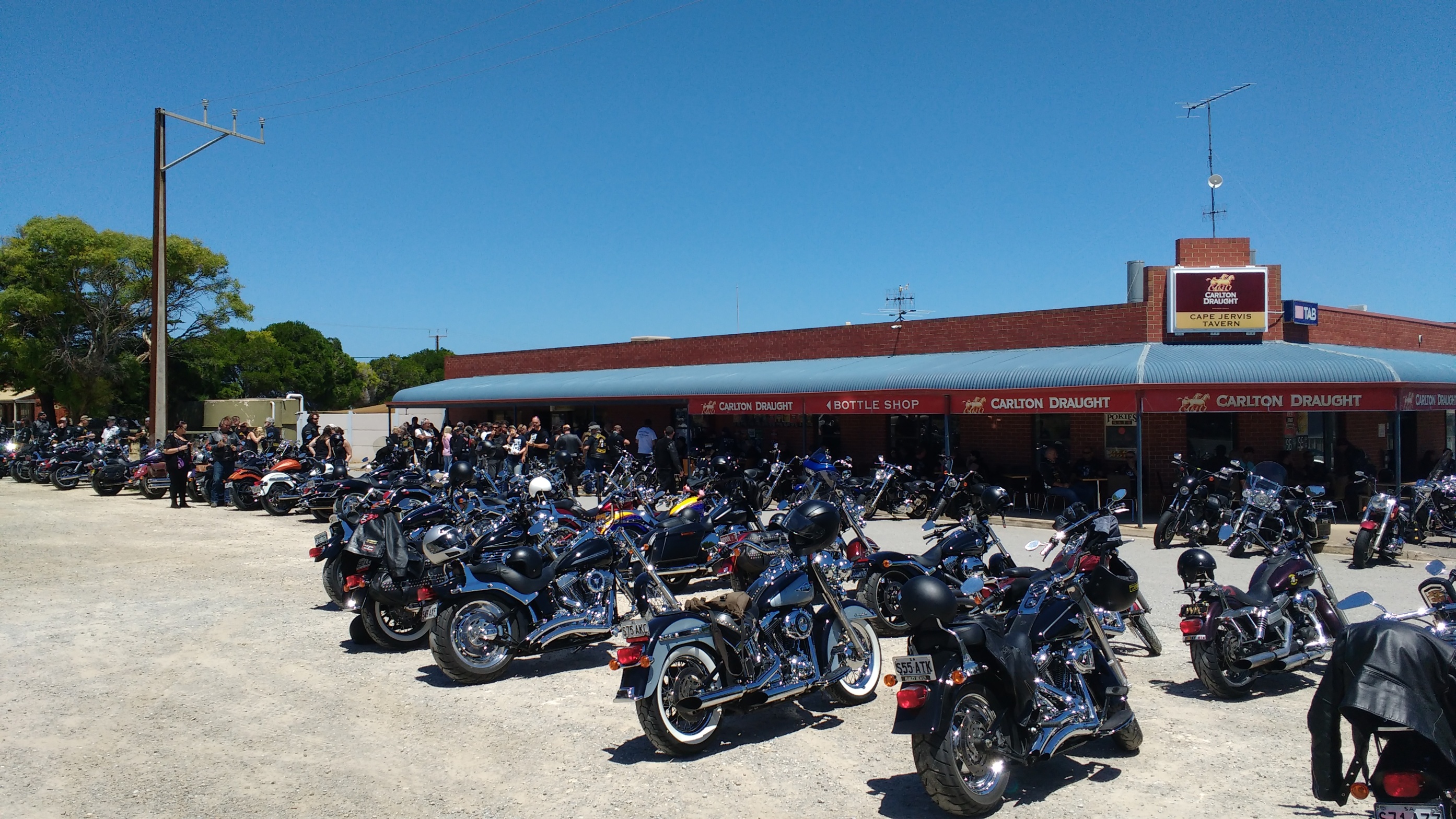After exploring Kangaroo Island, the next day we headed back to the mainland via the ferry. We stopped at the local pub in Cape Jervis and luckily just beat the 100s of bikies that had come to celebrate the holiday weekend.