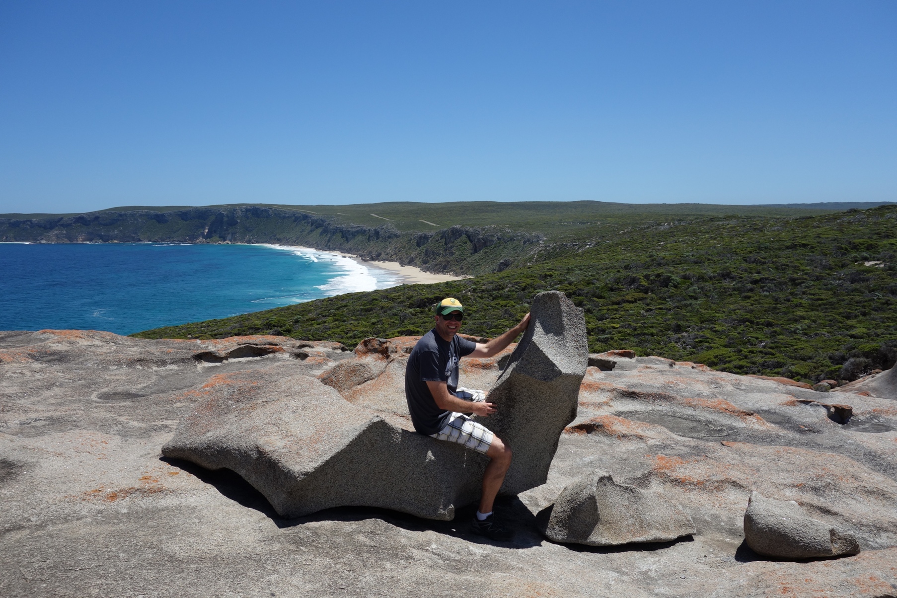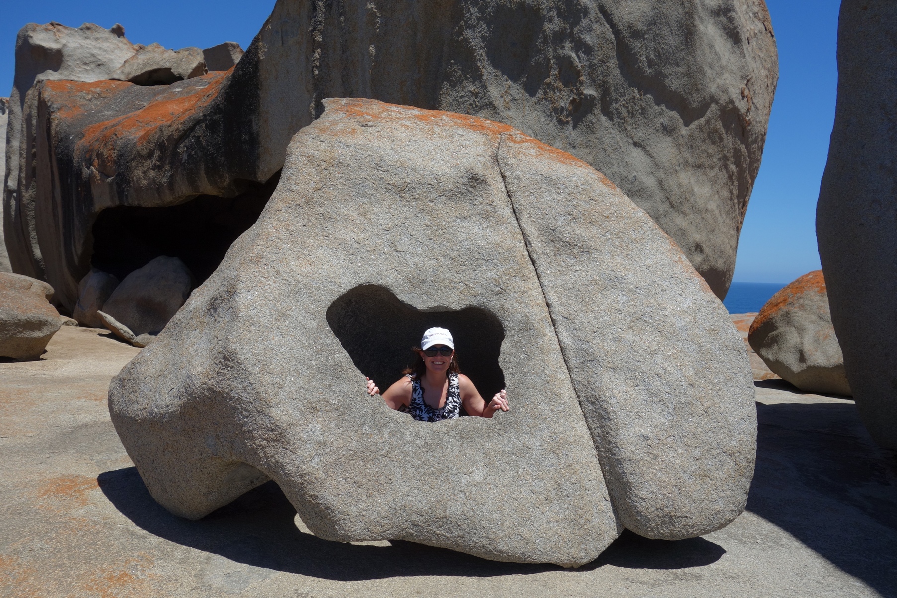 After that hike we got back into the car to see the other main attraction at the park – “Remarkable Rocks” – they did not disappoint. I decided to ride one and Sara did a really poor job of hiding.