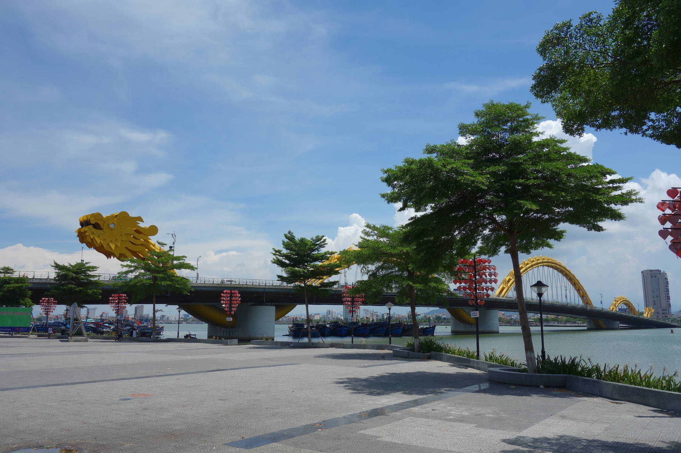 Sara mentioned our food challenges when traveling and this was a bit amplified in Danang. It is not a major international tourist location as far as we could tell. Plenty of Vietnamese tourists though. They sold a lot of seafood that was presented in buckets still alive and given our lack of language skills we were not entirely certain what we’d get if we attempted to order. Also, nearly every restaurant on our beach front street was exactly the same. Additionally, google maps and the internet in general were not a great help. But hey, walking around looking for food, sometimes you find a dragon bridge.