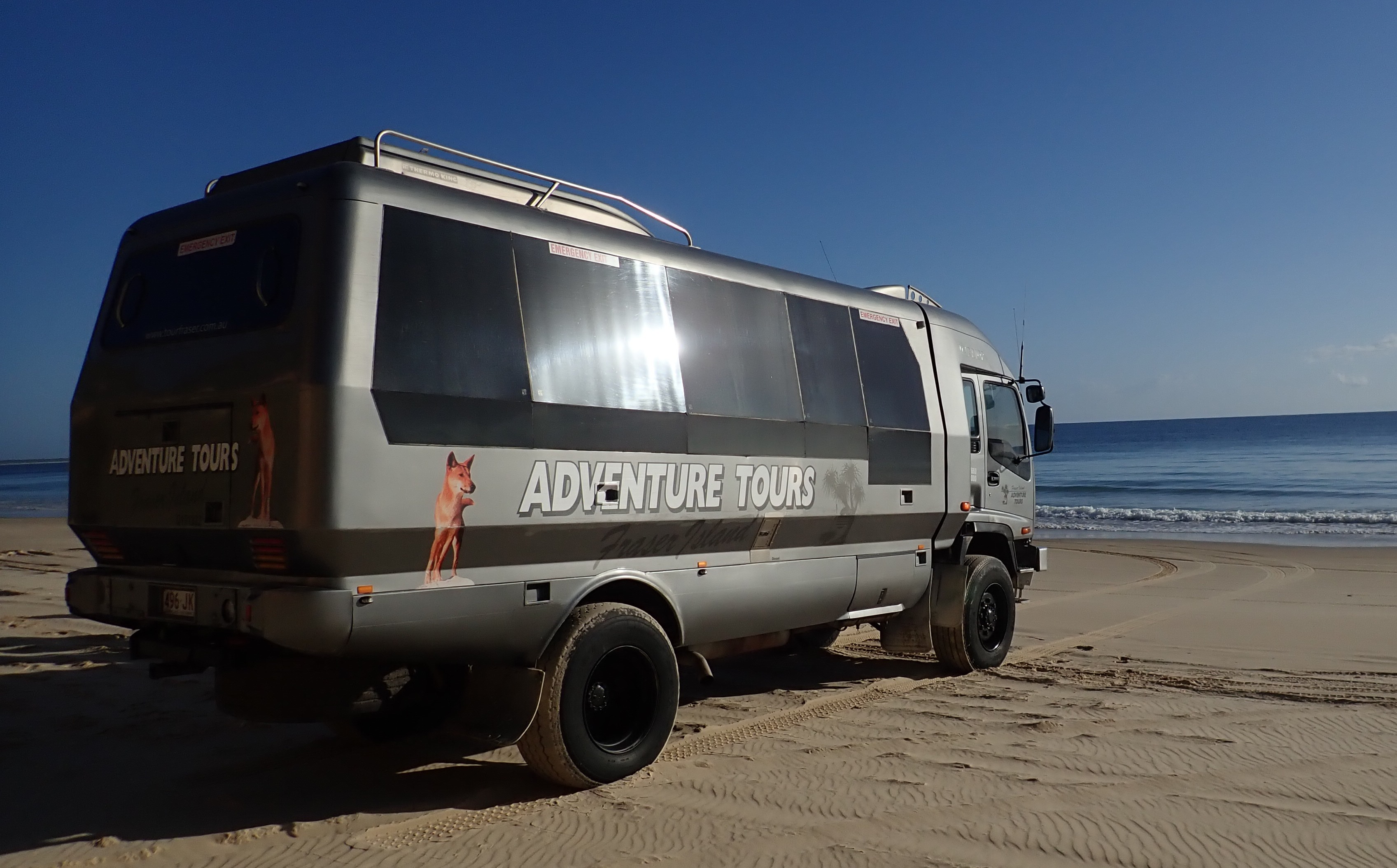 Next on our list was a day tour of Fraser Island – which started with a bus picking us up at our hotel at 545am. This bus took us to meet our “monster bus” – a 4 wheel drive behemoth: