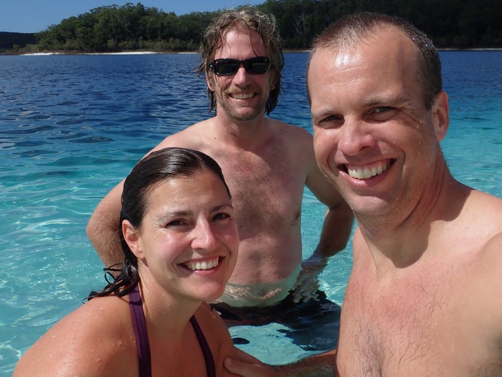 The behemoth left from Noosa with us on board and drove up the beach to catch a ferry to Fraser Island. Interesting note – the beach is considered a road, and you can do up to 80kph (50mph) on it. The ride was quite smooth. The highlight of the trip was stopping off for lunch and a swim at Lake McKenzie. The lake was beautiful, crystal clear and very refreshing!