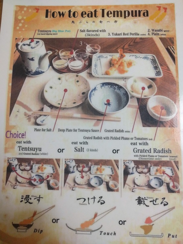 - Tempura which came with a helpful guide on how to properly eat it and led to a fun souvenir of wasabi salt.