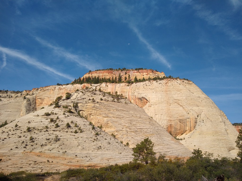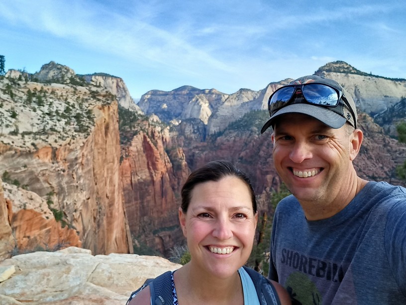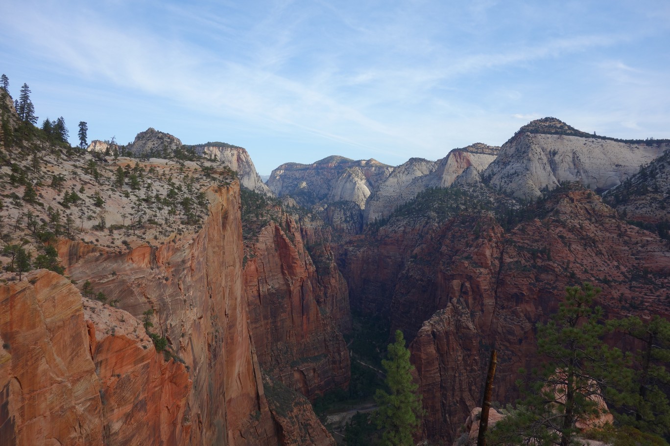 Angels Landing is the most famous hike in Zion, but I’d nixed that because it is a hike along a knife edge ridge with fixed chains to hold onto. Instead we hiked up past it along the West Rim trail and were super happy with our decision. The West Rim trail was gorgeous and uncrowded. When we passed the start to the scary part of the Angels Landing Hike it looked busy, but not too bad. By the time we returned past it it was an absolute zoo. We heard stories of people sitting on the chains and grabbing onto strangers when they were scared. Yikes.