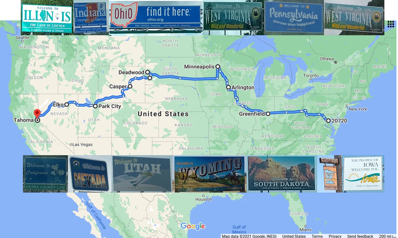 USA 2021 Maps January 4, 2022Adventures, TravelSara Jon insisted on taking photos of each state’s welcome sign which was fun at first and then became a bit of a chore when I wanted to nap – hahaha. Here are the results and the overall route we took.